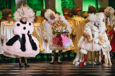 Inszeniert hatte Brigitte Dethier, die üppige Ausstattung (Bühne und Kostüme) entwarf Carolin Mittler, musikalisch geleitet wurde es von Dominic Limburg, und die Chöre studierte Christian Lindhorst ein.