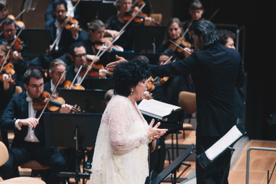 Ildikó Komlósi (als Amme) und das Rundfunk-Sinfonieorchester Berlin unter Vladimir Jurowski bei der konzertanten Aufführung von Straiuss´ Die Frau ohne Schatten zum MUSIKFEST BERLIN 2019 | Foto (C) Monika Karczmarczyk