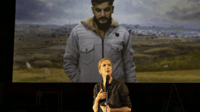 Milo Rau, seit 2023 Intendant der Wiener Festwochen, hat seine neueste Produktion mit Schaubühnendarstellerin Ursina Lardi zum Spielzeitauftakt ins Haus am Lehniner Platz mitgebracht. Die Premiere von Die Seherin in Wien Anfang Juni zog gemischte Kritiken nach sich. Im kleinen Globe an der Berliner Schaubühne sitzt man nun in einer sehr dichten, intimen Atmosphäre um die von Anton Lukas mit Sand, Müll und Autoreifen ausgestattete kleine Bühne, an deren schmaler Rampe zum Publikum Ursina Lardi zu Beginn noch ein paar Scheinwerfer platziert. Im Hintergrund wird auf einen großen Screen ein Video mit dem zweiten Darsteller, dem irakischen Lehrer Azad Hassan projiziert. Er wird im Laufe des Abends immer wieder seine Leidens-Geschichte aus dem 2014 vom IS besetzten Mossul erzählen, während live davor Ursina Lardi den Monolog einer von den Bildern der Gewalt an allen möglichen Krisengebieten der Welt faszinierten Kriegsfotografin hält.